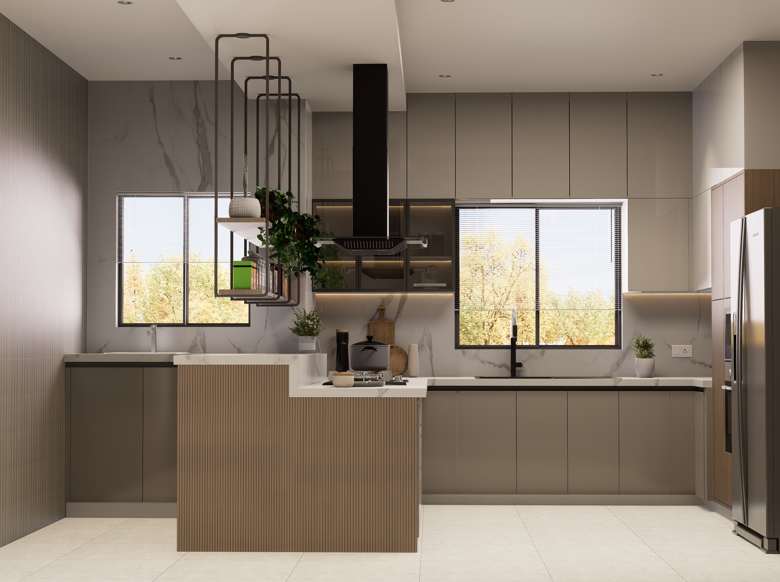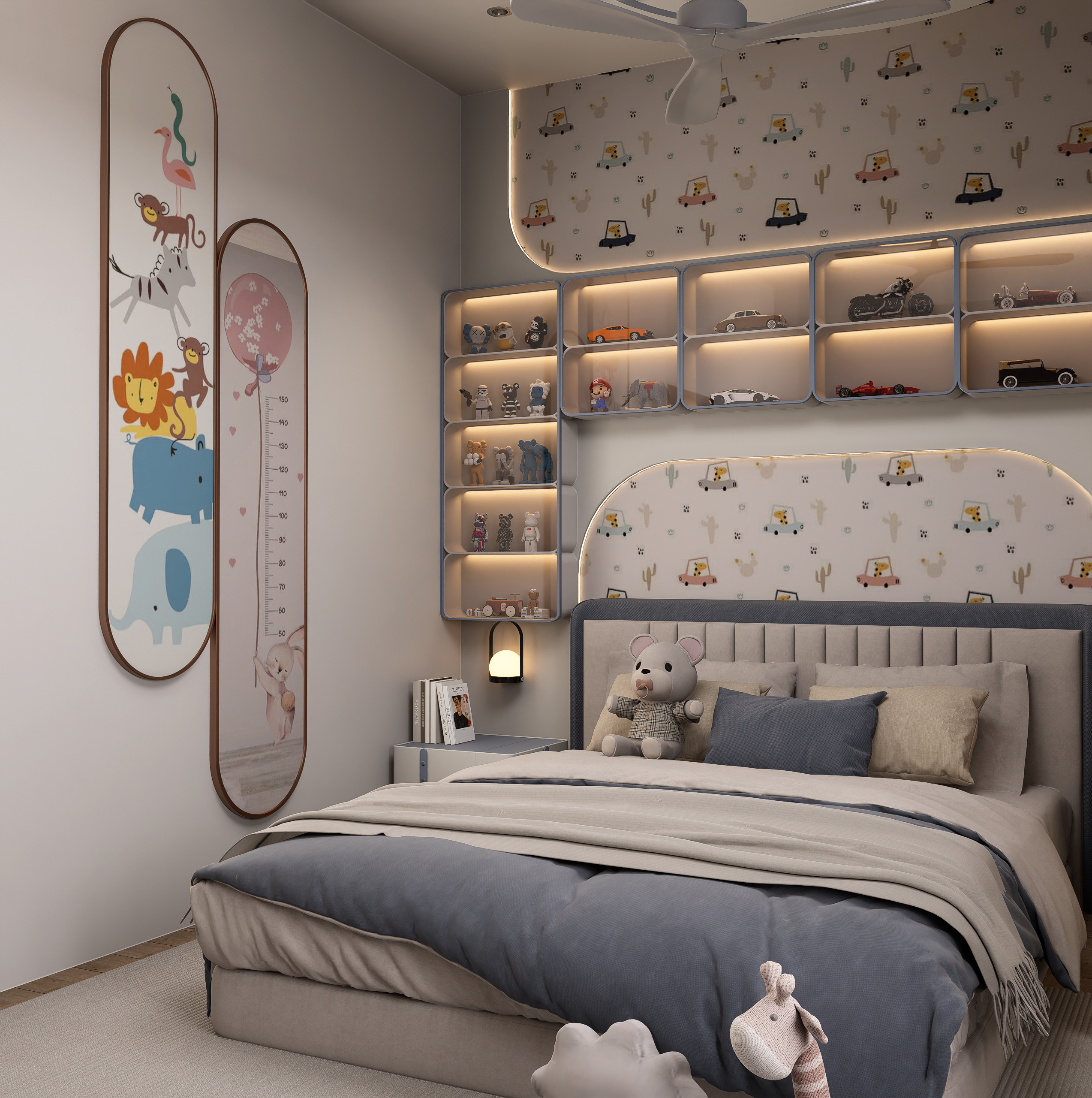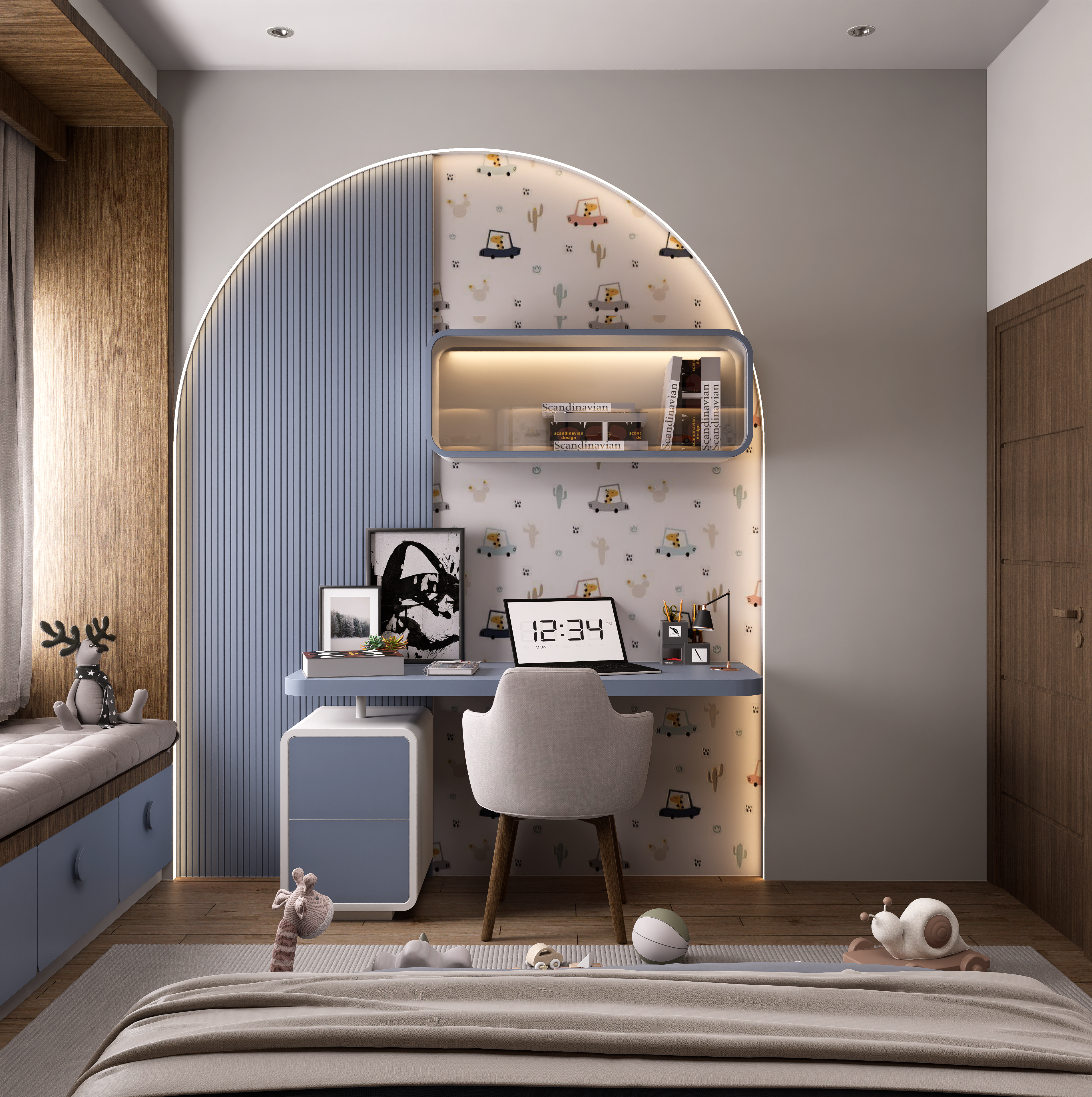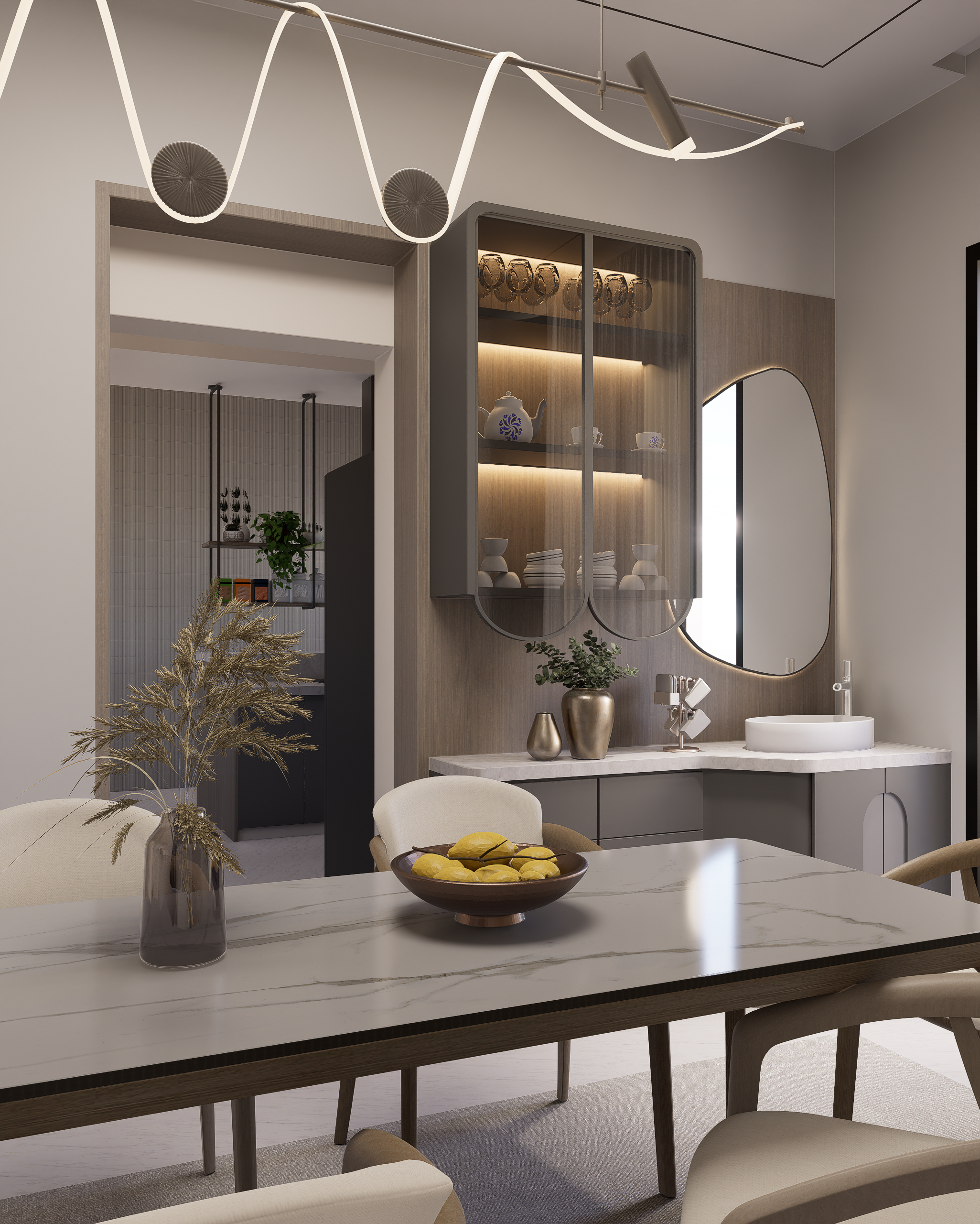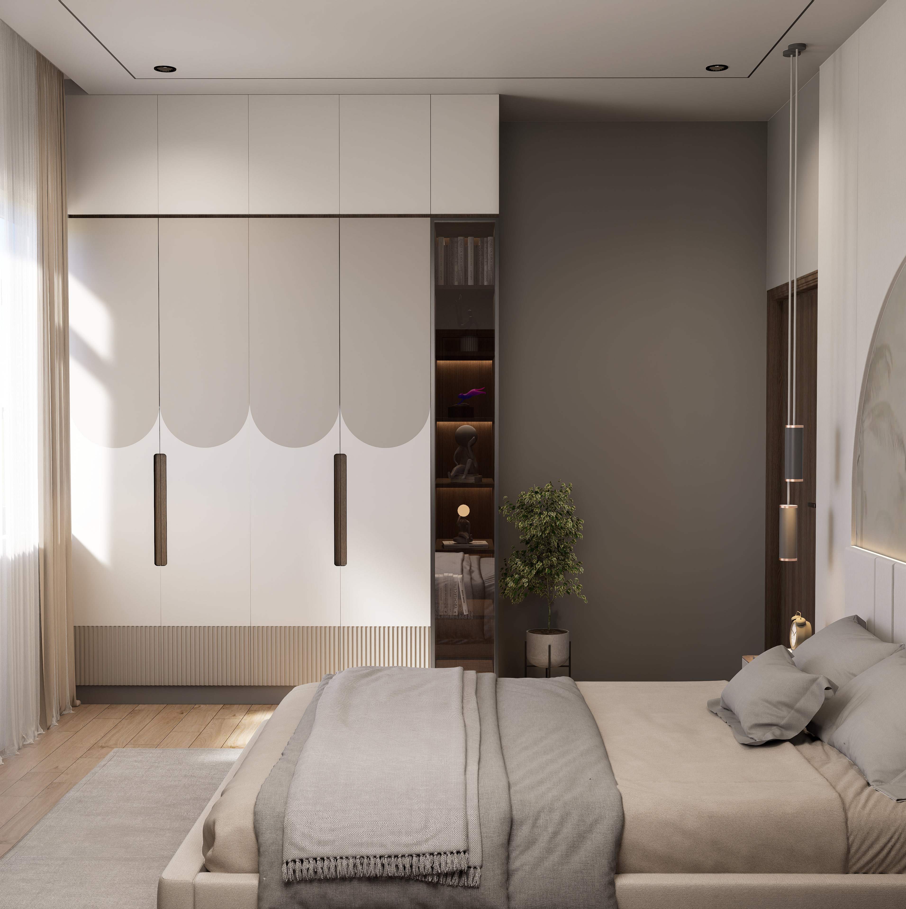 The project is located high above the cityscape on the 12th floor of Arima Apartment, positioned in the heart of the city. This compact 3BHK residence is designed for a young couple with a child, seeking refreshing interiors and a feel-good living environment. The design focuses on maximizing space utilization through smart planning, multifunctional elements, and efficient storage solutions, ensuring comfort, openness, and practicality within a limited footprint.