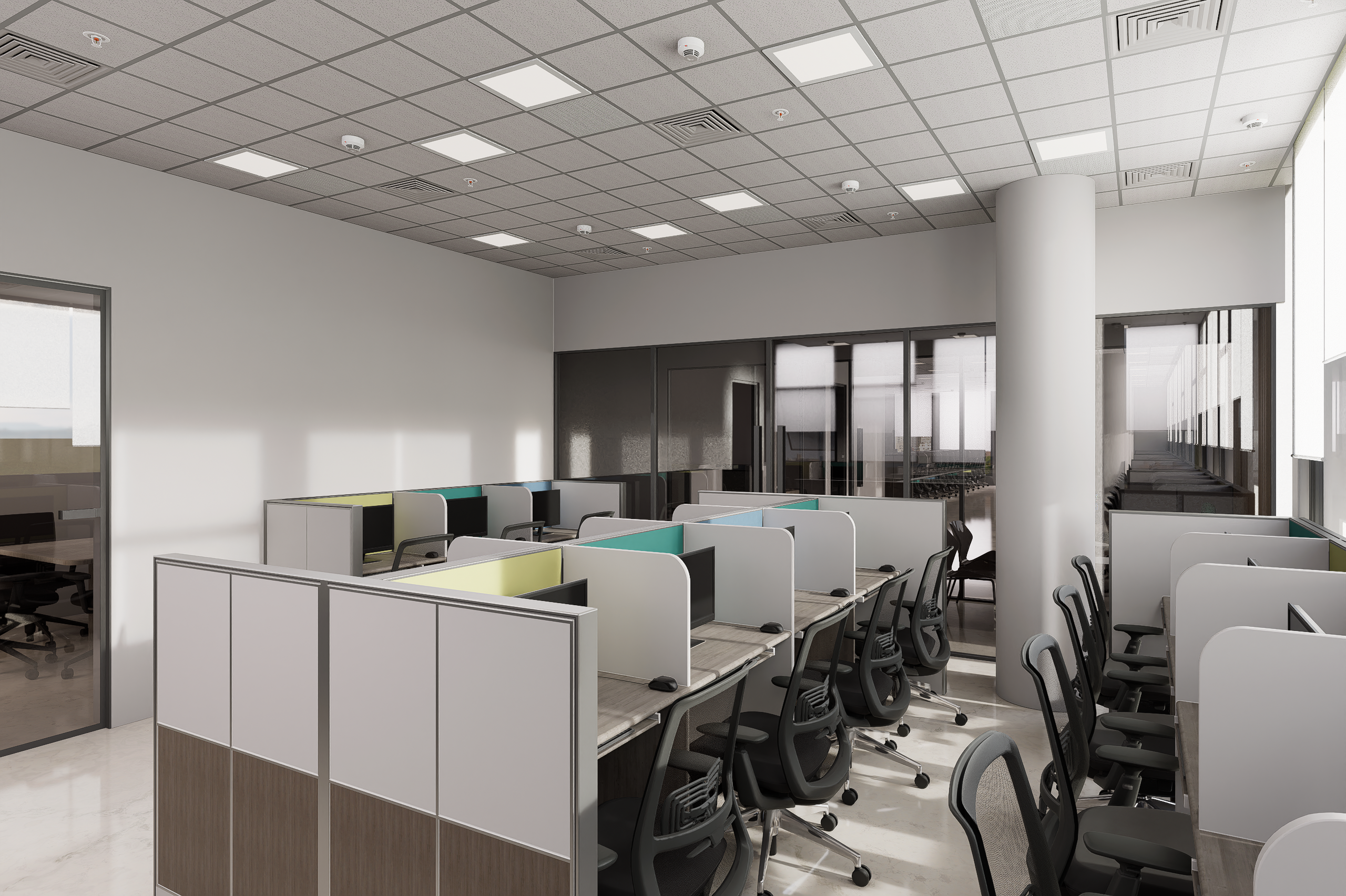 The project is located within the commercial complex of Nivasan Udhyana, spanning approximately 12,000 sq.ft across three floors. This dedicated call center facility is designed for RND Softech Systems, providing a functional, efficient, and technology-driven workspace tailored to meet the operational demands of a modern communication hub.
