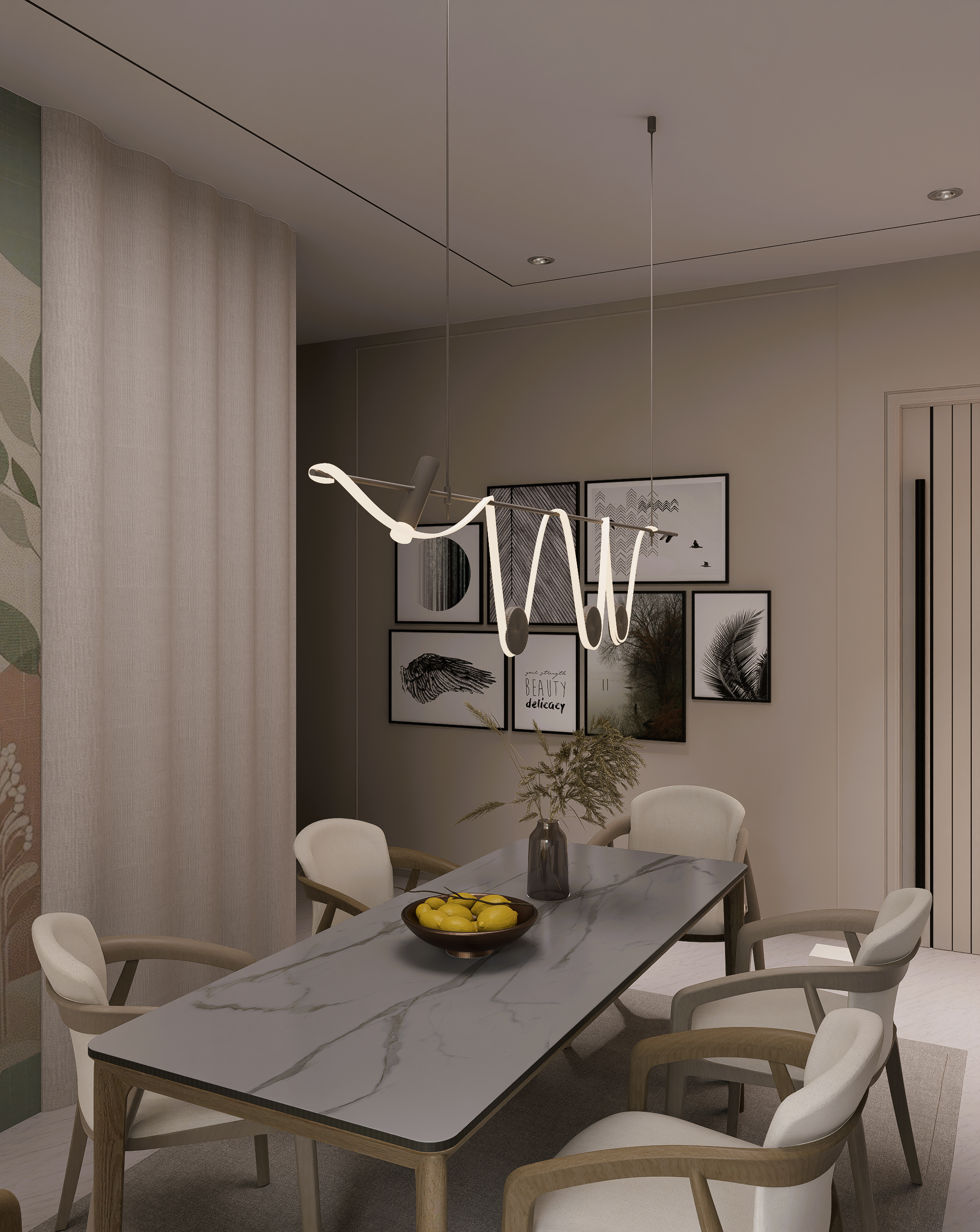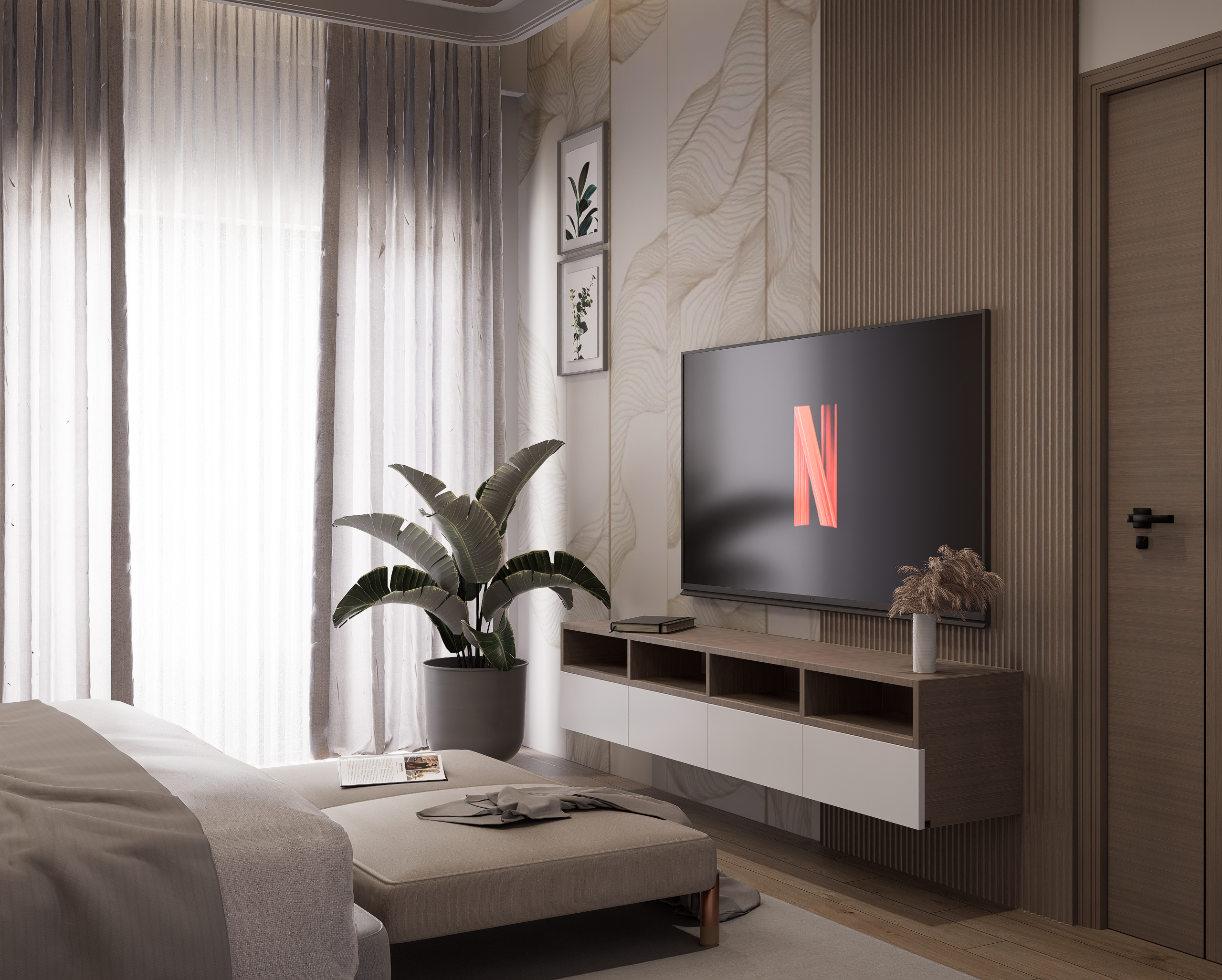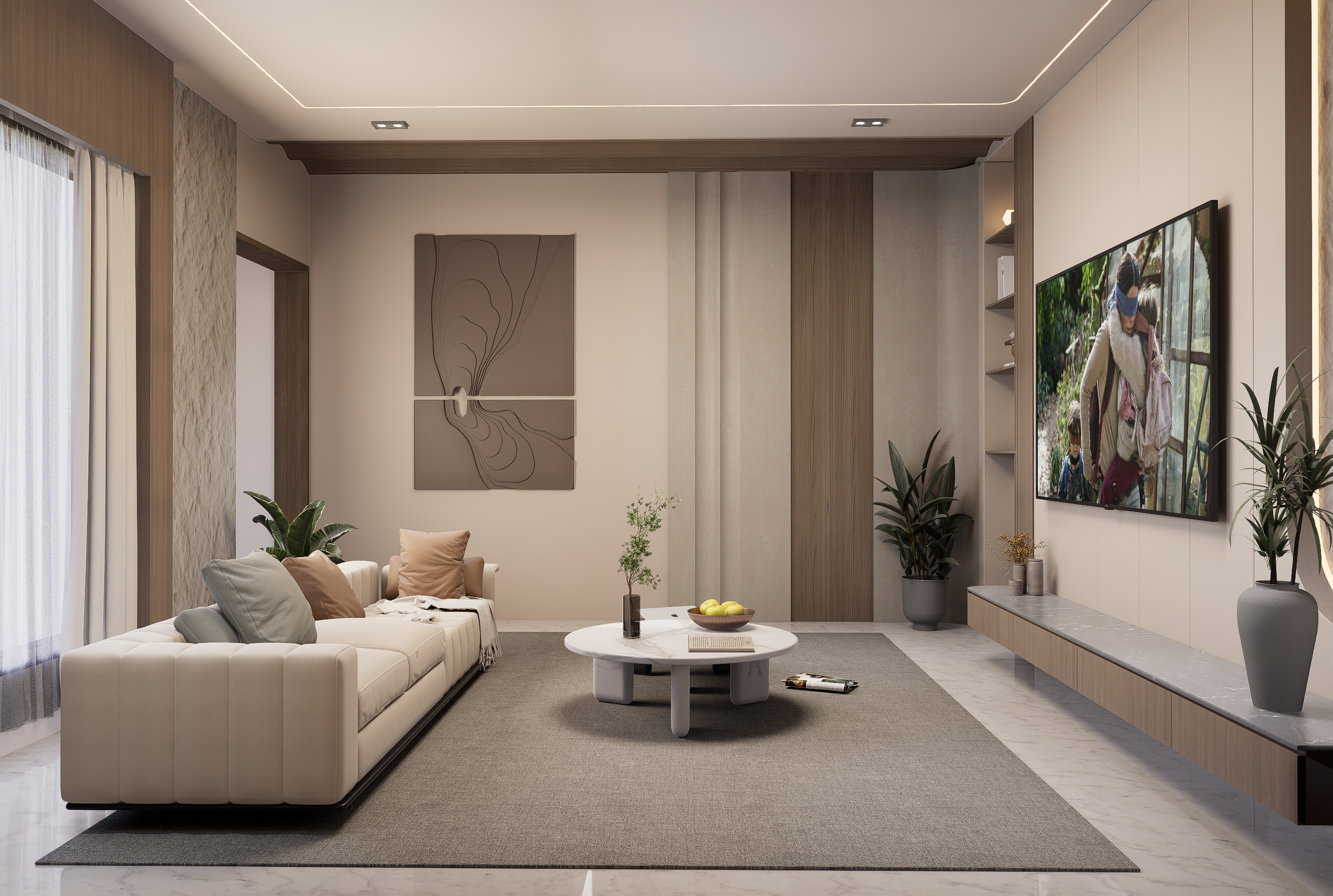 The project is located high above the cityscape on the 12th floor of Arima Apartment, positioned in the heart of the city. This compact 3BHK residence is designed for a young couple with a child, seeking refreshing interiors and a feel-good living environment. The design focuses on maximizing space utilization through smart planning, multifunctional elements, and efficient storage solutions, ensuring comfort, openness, and practicality within a limited footprint.